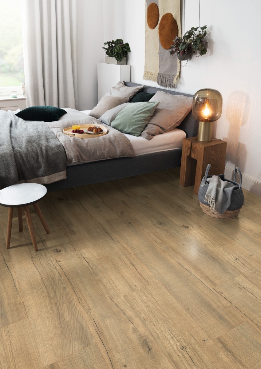 Štýlový dub s klasickým charakterom. Typická výraznejšia kresba dreva a kontrastné hrče podčiarkujú autenticitu dekoru. Podlaha v príjemnom prírodnom tóne bez výrazných farebných rozdielov bude v interiéri pôsobiť teplým a útulným dojmom. Nadčasový dizajn sa hodí pre akýkoľvek štýl interiéru. Podlahové dosky v širokom formáte Large zvýraznia celkový dojem z priestoru. Tento dekor je dostupný aj ako kompozitná podlaha Design GreenTec (EPD027) a korková podlaha Comfort (EPC001).