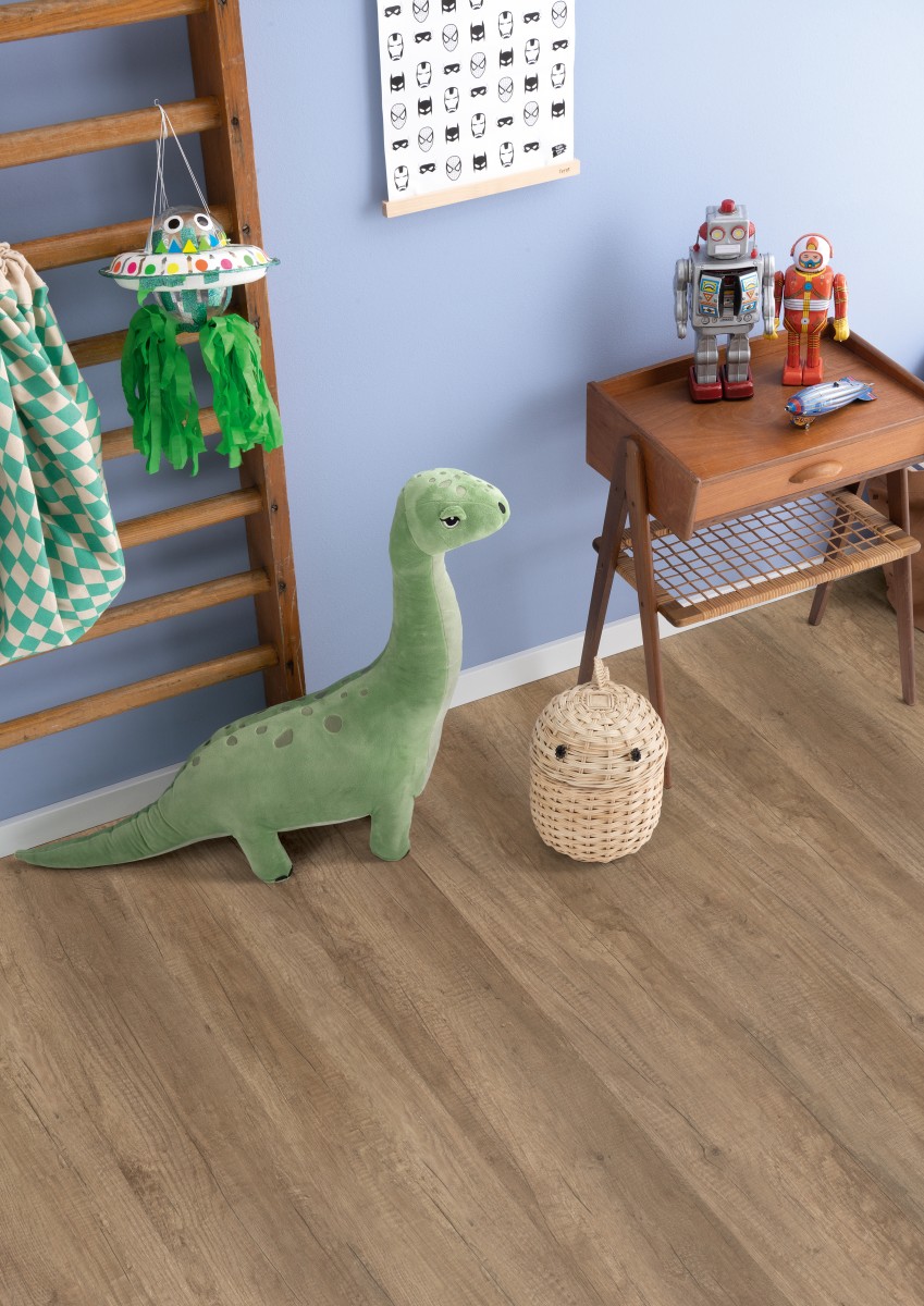 Späť k prírode. Dub Valley prírodný je obľúbený trendový dekor s autentickou povrchovou štruktúrou a prirodzenými vlastnosťami dreva, ako sú tmavé praskliny a hrče. V interiéri pôsobí naturálnym a moderným dojmom. Vytvára pekné kontrasty a dokonale ladí s klasickými farbami ako je biela, čierna, antracitová. Podlaha má protišmykový povrch R10. Zvoliť si môžete klasický formát podlahových dosiek Classic alebo podlahové dosky v širokom formáte Large, ktoré dodajú interiéru novú dimenziu a poskytnú priestrannejší pocit, napríklad v otvorených priestoroch. Pre všetky vlhké priestory je dekor dostupný aj vo vodeodolnej verzii Aqua+.