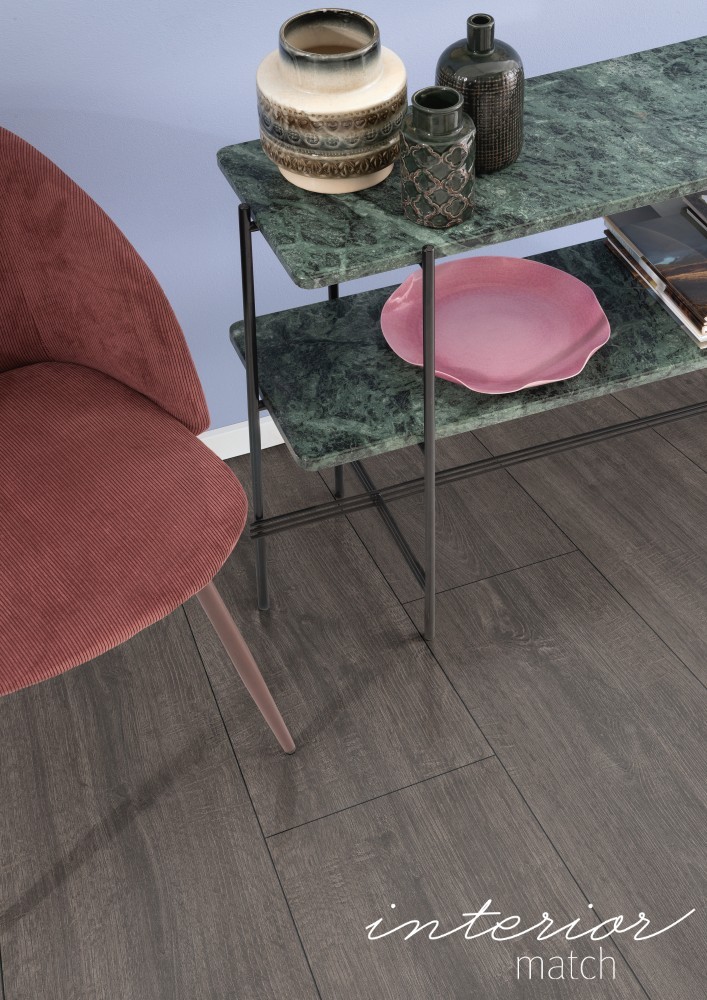 Laminátové podlahy EGGER patria medzi obľúbené podlahové krytiny, ktoré vynikajú svojou kvalitou, univerzálnosťou a štýlom. Dub Sherman antracitový zaujme rustikálnejším vzhľadom s efektmi použitého dreva. Veľmi pekne vynikne v interiéroch s dostatkom svetla. Podlahové dosky vo formáte Large zvýraznia celkový dojem z priestoru. 4- stranné priznané drážky po celom obvode zvýrazňujú vzhľad jednotlivých podlahových dosiek. Tento dekor je súčasťou konceptu Interior match. Je dekorovo zhodný s nábytkovým dekorom H1346 ST32 z Kolekcie dekoratívnych materiálov EGGER.