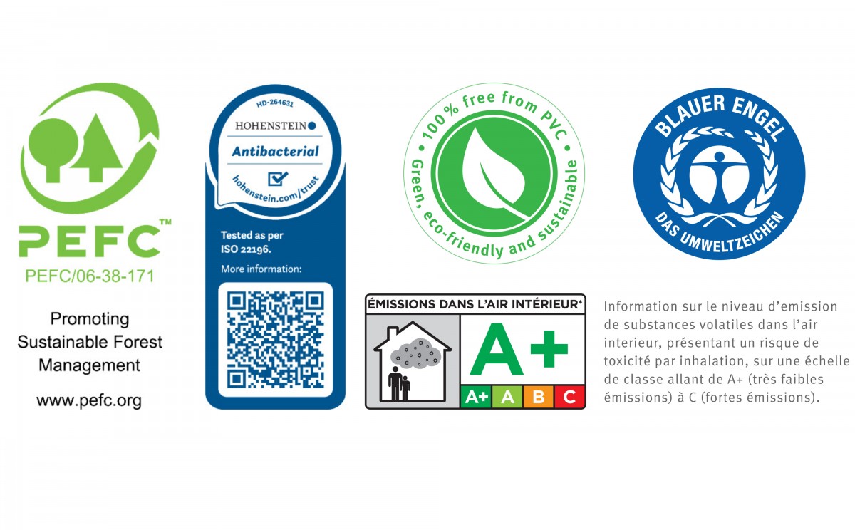 Podlaha DESIGN GreenTec je na rozdiel od konvenčných vinylových podláh úplne bez obsahu PVC, škodlivých látok a zmäkčovadiel. 100% dreva použitého na jej výrobu pochádza z regionálnych certifikovaných lesov. Integrovaná podkladová vrstva je vyrobená z recyklovaného korku. Vďaka svojmu prírodnému zloženiu spĺňa najvyššie požiadavky vplyvu na životné prostredie, udržateľnosť a zdravé bývanie podľa medzinárodných noriem kvality.