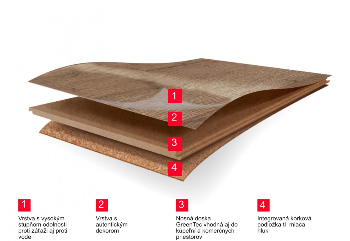 - Tichšia ako laminát vďaka integrovanej podložke z korku