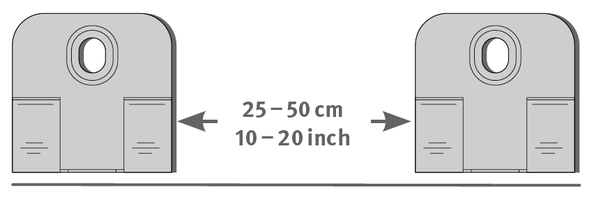 - Medzi úchytmi ponechajte vzdialenosť 25 - 50 cm v závislosti od stavu steny. V prípade nerovnej steny sa úchyty pripevňujú na priehlbené a nie na vypuklé body. Pri väčších nerovnostiach stien je možné počet úchytov zvýšiť podľa potreby.