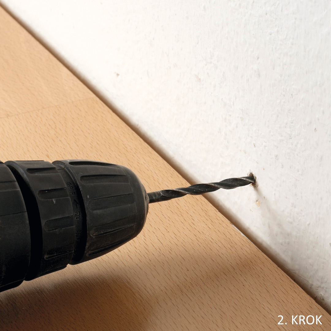 - Vysajte vyvŕtaný otvor a potom vložte dodanú hmoždinku