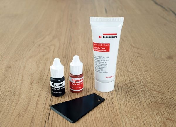 Opravná sada EGGER Decor Mix & Fill na škriabance a odery pre podlahy v svetlých odtieňoch. S touto korekčnou pastou môžete rýchlo a ľahko odstrániť malé poškodenia na vašej podlahe. Hmota na opravu sa skladá z vypĺňacej pasty a pigmentových zložiek, ktoré sa pomocou priloženej farebnej šablóny dajú zmiešať v závislosti od zmiešavacieho pomeru tak, aby zodpovedala dekoru vašej podlahy.
