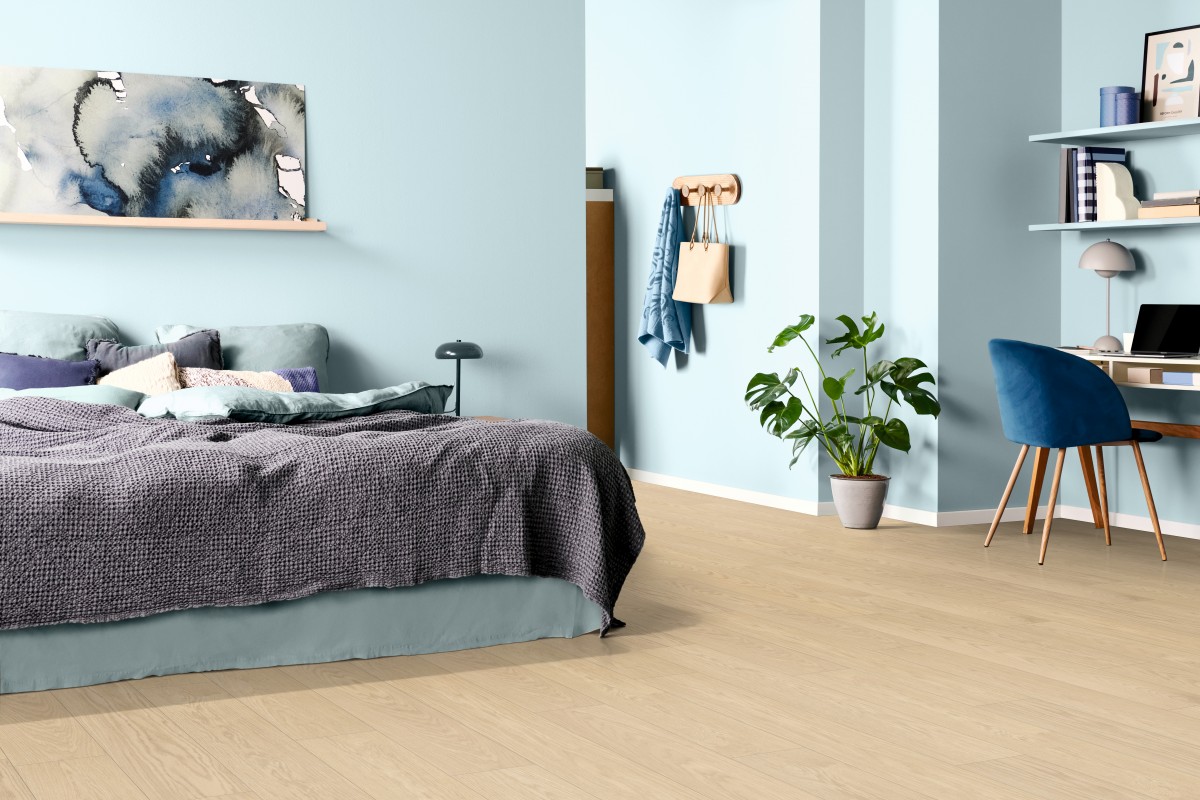 Zelená farba do moderného interiéru jednoznačne patrí. Evokuje prepojenie s prírodou. Trendom sú jemné matné zelené tóny prírody. Inšpiráciou pre tento farebný trend sa stali rastliny ako rákos, eukalyptus, ale aj jedľa. V stavebníctve a architektúre je koncept prepojenia interiérového designu a prírody známy ako biofílny design. Typické sú presvetlené miestnosti s vhodnými prvkami a rastlinami, ktoré vo vzájomnej harmónií vytvárajú jedinečnú atmosféru. Podlahy EGGER so svetlým, prírodným vzhľadom sa k tomuto designu dokonale hodia: sú moderné, funkčné a spĺňajú všetky kritéria, ktoré robia podlahu skutočne dobrou.