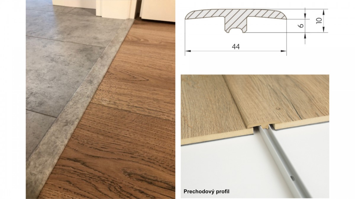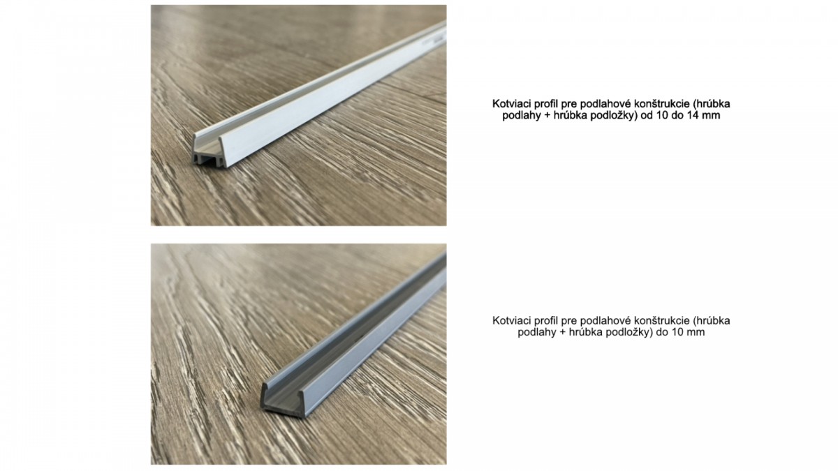 • kotviaci profil, ktorý je určený pre podlahové konštrukcie ( hrúbka podlahy + hrúbka podložky) do 10 mm ( rozmer: 2400 x 10 x 7 mm)