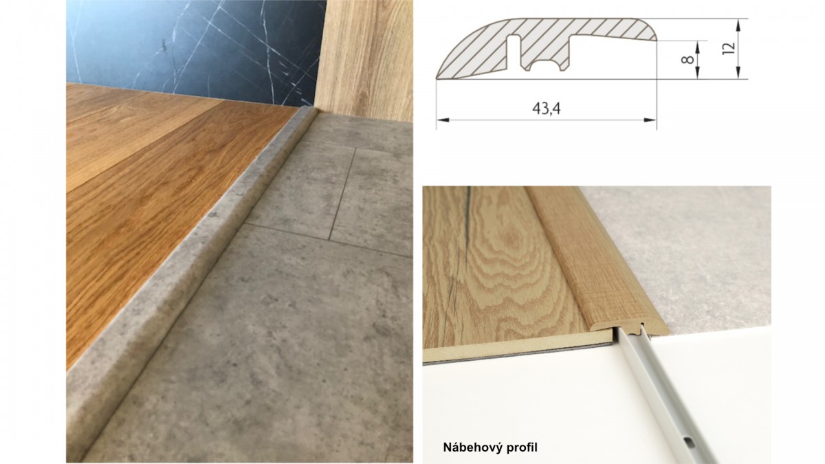 Pokiaľ majú podlahy rôzne výšky je potrebné použiť vyrovnávací profil, aby sa úrovne podláh vyrovnali. Naše HDF nábehové profily umožňujú čistý a opticky atraktívny prechod. Sú dostupné v širokej škále dekorov a hravo ich tak prispôsobite vašim vizuálnym požiadavkám. Profily sa upevňujú do kotviaceho profilu.