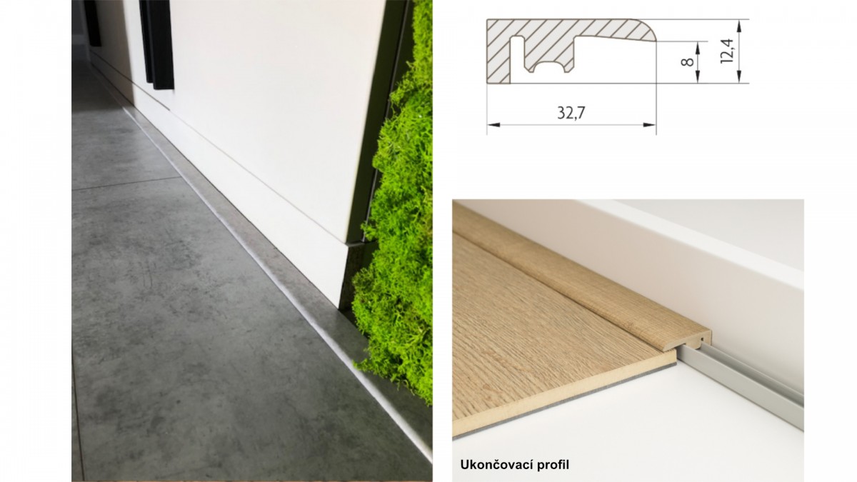 HDF ukončovacie profily umožňujú atraktívne a estetické ukončenie podlahy pri stenách, dverách a francúzskych oknách. Vďaka širokej farebnej škále dekorov si ľahko prispôsobite profil k podlahe, čím dosiahnete dokonalý finálny vzhľad. Ukončovacie profily sa kotvia rovnako ako nábehové a prechodové profily do kotviaceho profilu.