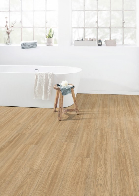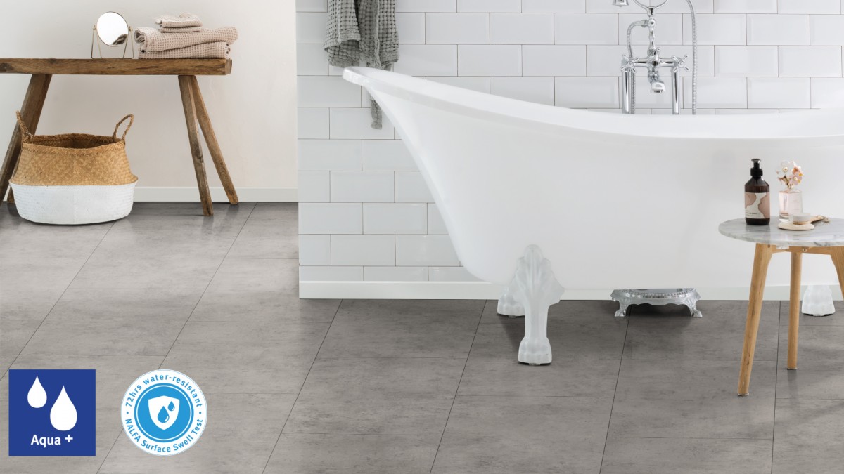 Chceli by ste mať namiesto studených dlaždíc vo svojej kúpeľni radšej laminátovú podlahu? S podlahami z rady AQUA+ je to možné.