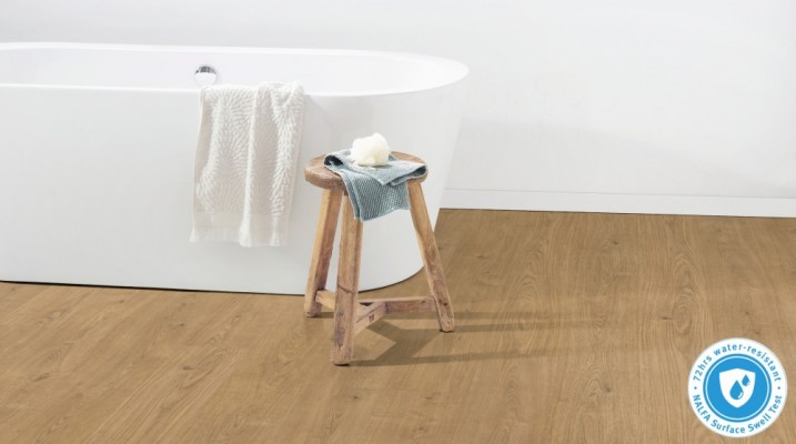 Chceli by ste mať namiesto studených dlaždíc vo svojej kúpeľni radšej laminátovú podlahu? S podlahami z rady AQUA+ je to možné.